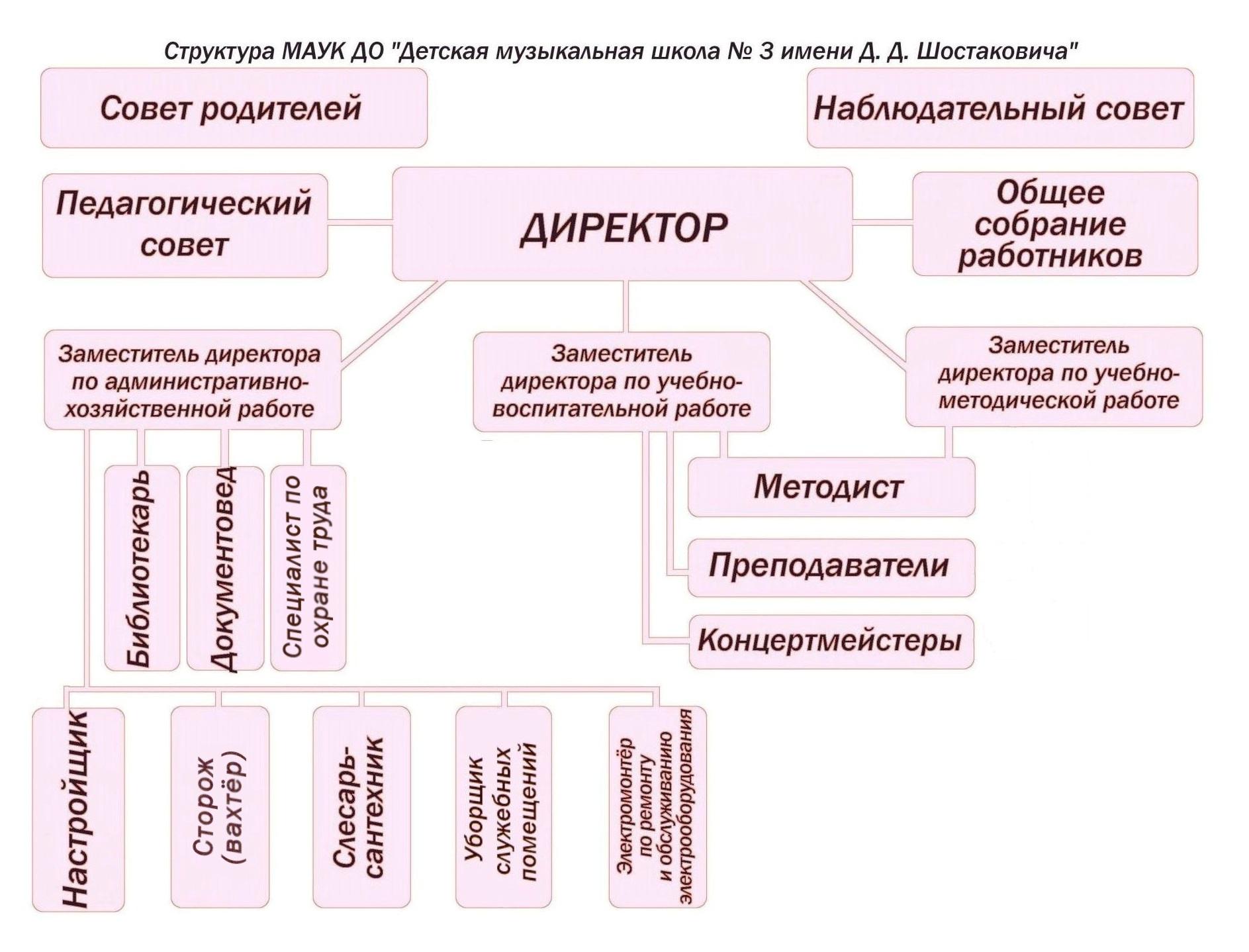 Единоличным исполнительным органом МАУК ДО «ДМШ № 3 имени Д. Д. Шостаковича» является директор школы, который осуществляет текущее руководство ее деятельностью. Коллегиальными органами управления школы, обеспечивающими государственно-общественный характер управления, являются Общее собрание работников школы, Педагогический совет, Наблюдательный совет.